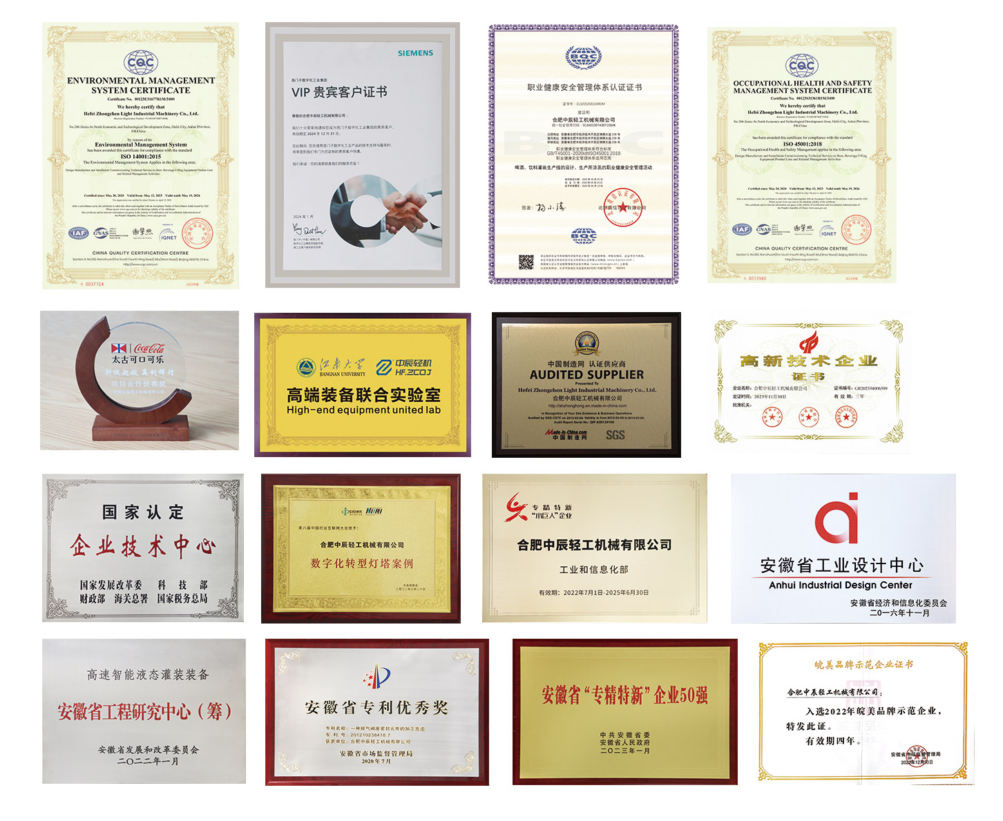 Zhongchen Light Machinery was honored with the title of "Top 50 Enterprises in China's Light Industrial Equipment Manufacturing Industry" and "Top 10 Enterprises in China's Liquid Food Machinery Industry"; in October, Zhongchen Light Machinery was recognized as a "Provincial Service-oriented Manufacturing Demonstration Enterprise"; in November, Zhongchen Light Machinery was identified as a "2023 Anhui Provincial Technological Innovation Demonstration Enterprise"; in December, Zhongchen Light Machinery won the "Excellent Enterprise in China's Beverage Industry Chain" title. At the same time, Zhongchen Light Machinery was elected as a permanent executive member unit of the Beer and Beverage Industry Vocational Education and Industrial Cooperation Commonweal