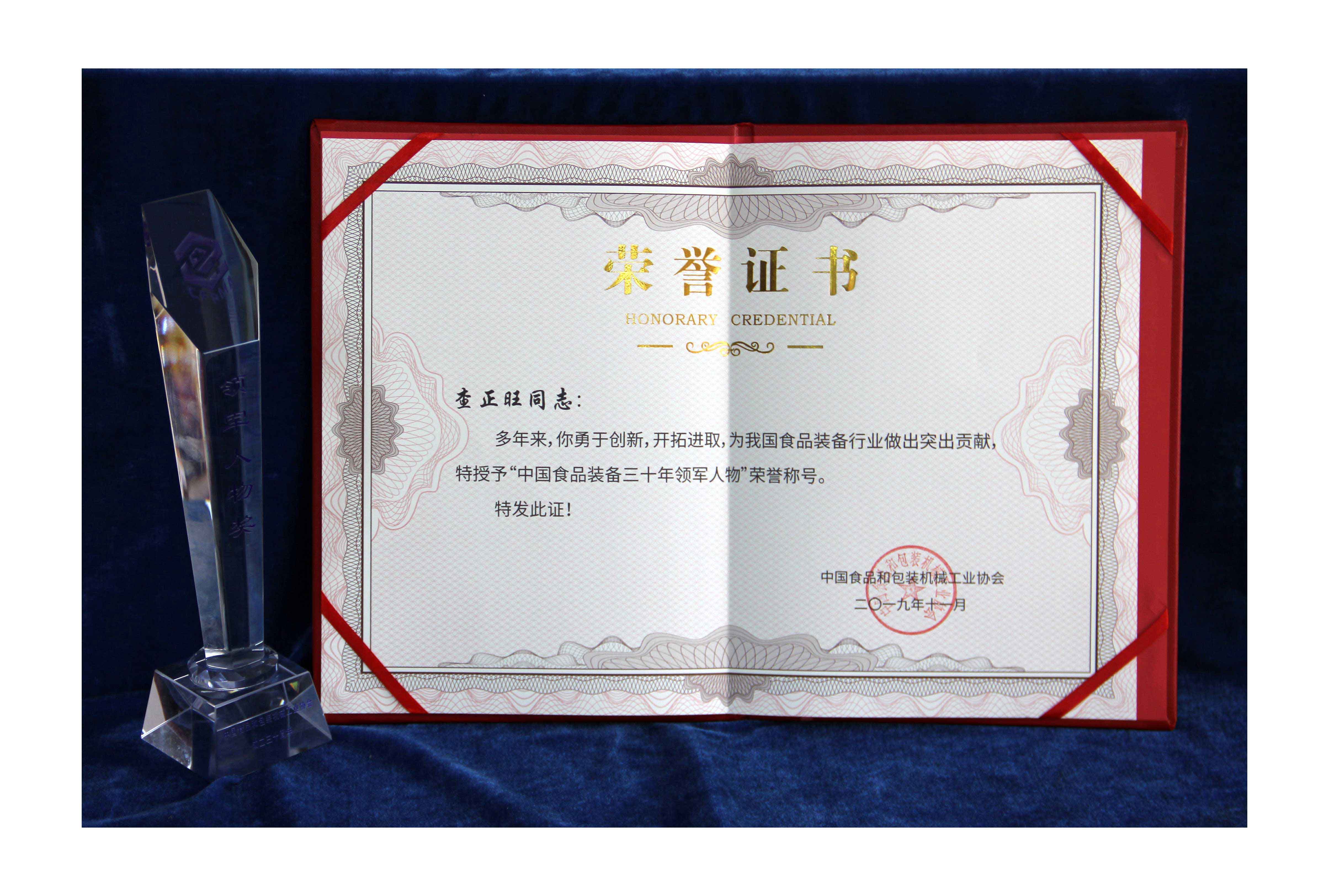 In December, the China Beverage Association awarded Mr. Zha Zhengwang, general manager of Zhongchen Light Machinery, the "Outstanding Contribution Award in China's Beverage Industry in the Past 30 Years".