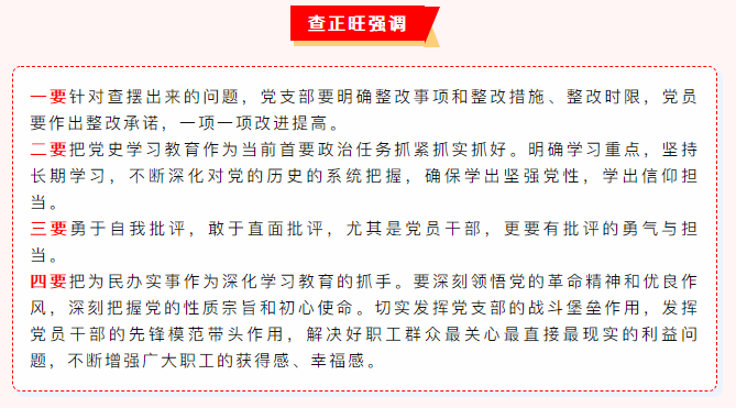 查正旺在點評中指出,這次專題組織生活會,各支部重視、黨員認(rèn)真、準(zhǔn)備充分、主題突出、程序規(guī)范,取得了較好的效果,達(dá)到預(yù)期目標(biāo)。支部黨員交流學(xué)習(xí)體會、盤點理論學(xué)習(xí)收獲,不僅是對前一段時間黨史學(xué)習(xí)教育的階段性檢驗,也能對下一步黨史學(xué)習(xí)教育起到推動作用。