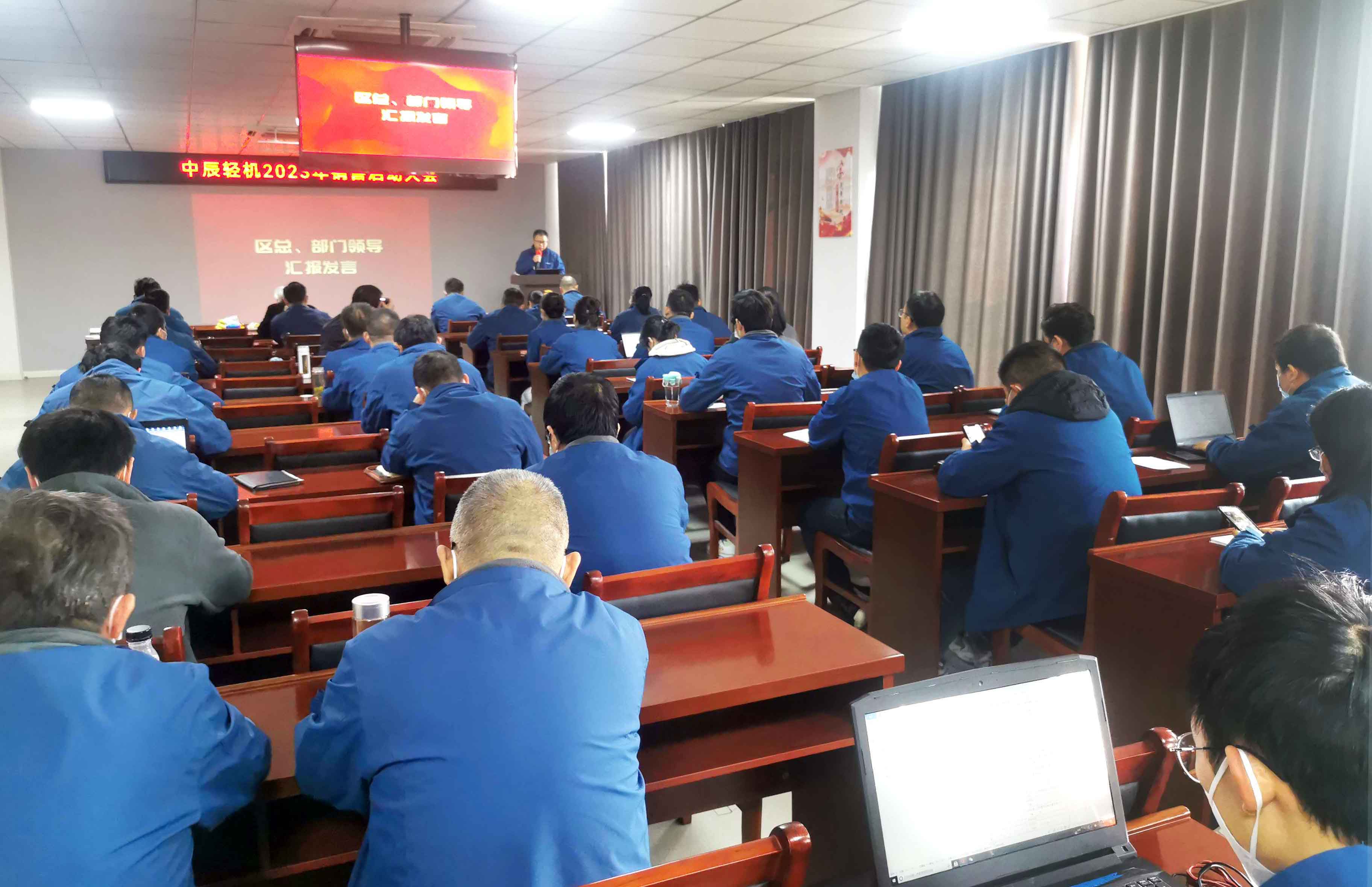 On January 7, Zhongchen Light Machinery organized a grand annual sales kick-off meeting. Chairman and President Zha Zhengwang, General Manager He Sheng attended the meeting and delivered speeches, while the meeting was hosted by Deputy General Manager Xu Chengjun. All employees in the sales system participated in the meeting.