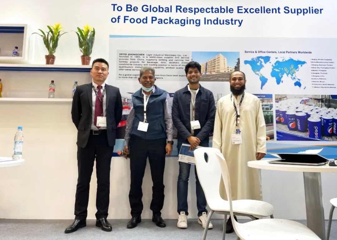 At the exhibition site, the overseas sales team of Zhongchen Light Machinery introduced the company's development history, technological innovations, and new business scope to the visiting guests. They also emphasized the company's new positioning - becoming a globally respected and excellent supplier in the food packaging industry. Many customers came to the booth with project requirements, and they had in-depth and detailed exchanges with the team in order to reach a cooperation intention as soon as possible.