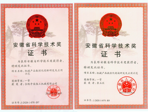 Zhongchen Light Machinery collaborated with Hefei University of Technology on a national science and technology support project called "Innovative Research and Application Demonstration of NC Technology for Mechanical Products," which won the first prize in the Anhui Provincial Science and Technology Award.